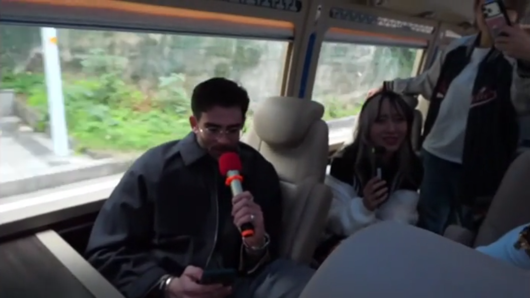 甚至在旅行社的大巴车上唱了一首中文红歌……